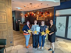 >Das stilvolle Boutique Hotel Indigo in Dresden wurde wiederholt mit 4 Sternen der Deutschen Hotelklassifizierung ausgezeichnet. Das Team um Patricia Gangfuß, Hotel Managerin und Marian Drummer, Office Admin zeichnet sich durch besondere Herzlichkeit und persönlichen Service aus. Touristen und Stammgäste lieben das Flair zwischen Barock und Industriekultur im ausgezeichneten Hotel. Die Zimmer sind individuell und mit zeitloser Eleganz gestaltet und begeistern Besucher immer wieder. Der DEHOGA Sachsen und die IHK Dresden gratulieren ganz herzlich zur Auszeichnung mit 4 Sternen der Deutschen Hotelklassifizierung.