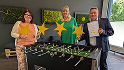 >Ronald Schuster, Director of Sales & Events im Penck Hotel Dresden nimmt gern für sein Team die Auszeichnung mit 4 Sternen der Deutschen Hotelklassifizierung entgegen. Das Art & Design Hotel in der historischen Altstadt Dresdens verfügt über 174 modern eingerichtete Zimmer und Junior Suiten. Tagungen und Feiern bis zu 340 Teilnehmer sind immer stark nachgefragt. Das Hotel hat gerade wieder sein Umweltzertifikat über Green Sign bestätigt und punktet mit Ökostrom. Außerdem gehört das Penck Hotel Dresden seit vielen Jahren zu den erfolgreichsten Ausbildungsbetrieben. Bewerbungen werden in allen Bereichen gern entgegengenommen. Vertreterinnen des DEHOGA Sachsen und der Saxonia gratulieren herzlich zu der erfolgreichen Wiederklassifizierung. www.penckhoteldresden.de