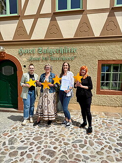 Bild: Kathleen Rabe (DEHOGA Sachsen), Brit Gorny & Julia Biermann (Hotel Saigerhütte), Janine Nicke (IHK Chemnitz)