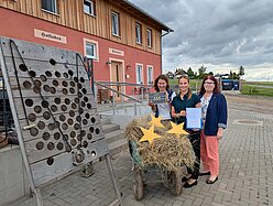 >Die Inhaberin der Pension Biohof Klügel, Kerstin Ardelt-Klügel, freut sich sehr über die erfolgreiche Bestätigung ihrer exzellenten Leistungen mit der Auszeichnung 3 Sterne Superior der deutschen Hotelklassifizierung. Landschaftlich reizvoll gelegen mit einem grandiosen Blick auf Felder, Wälder und das nahe Dresden bietet die Pension den perfekten Rahmen für Touristen mit und ohne Pferd. Zum Frühstück werden die Gäste mit köstlichen regionalen Spezialitäten aus dem eigenen Hofladen verwöhnt. Bei schönem Wetter ist der wundervolle Biergarten am Wochenende ein beliebter Treffpunkt. IHK Dresden und DEHOGA Sachsen gratulieren ganz herzlich zu der erfolgreichen Klassifizierung. Weitere Informationen www.biohof-klügel.de