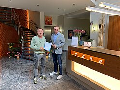 >Ein wunderbares Kleinod steht im Leipziger Norden und kann im kommenden Jahr auf 3 Jahrzehnte zurückblicken: das Hotel Hiemann! Insgesamt 3 Generationen arbeiten Hand in Hand zusammen. In den letzten Jahren wurde viel ausprobiert, umgebaut und nun geht’s im Restaurant mit einer Renovierung in den Sommerferien weiter. Überzeugte Gäste schätzen die unaufgeregte Atmosphäre der großen Hotelzimmer, exzellente Küche im Restaurant und vielen Annehmlichkeiten wie Tiefgarage mit E-Lade-Säule, Sauna uvm. Wir gratulieren dem Team um Jens Hiemann zur Hotelklassifizierung mit 3 Sternen und überbringen die besten Wünsche durch unseren Regionalleiter Stefan Niklarz.
